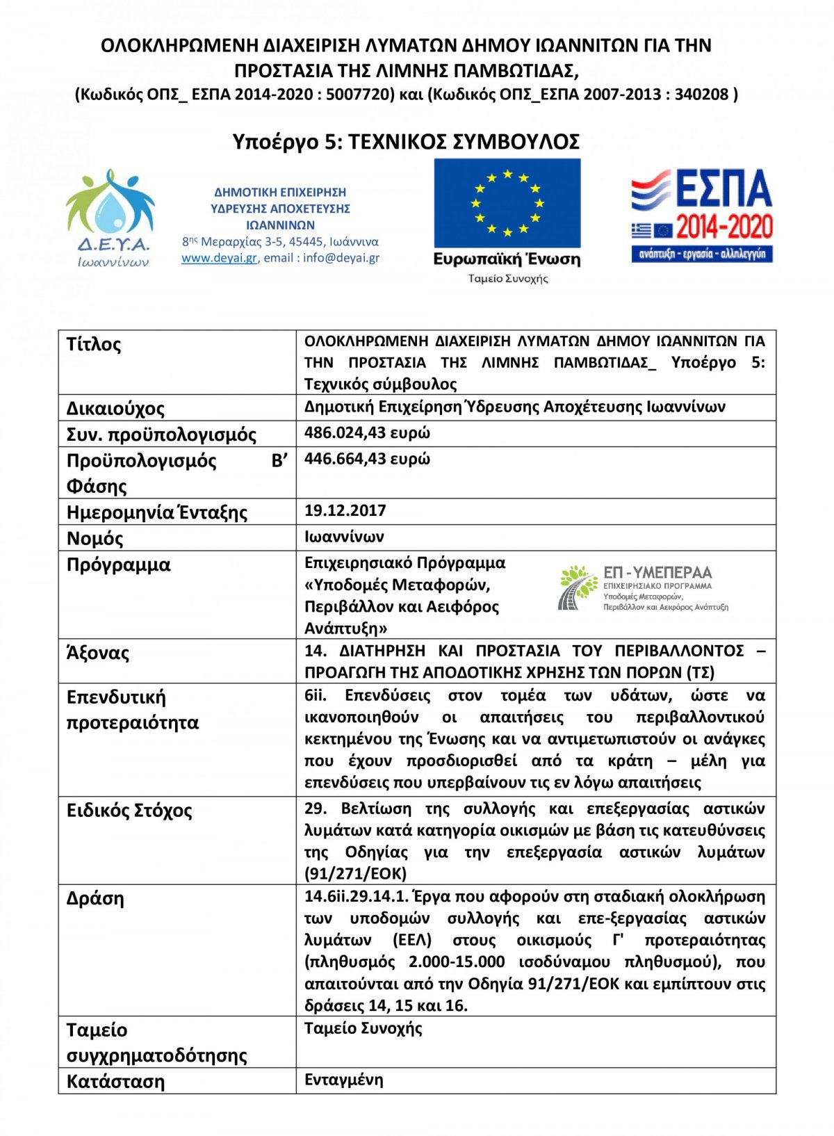 Πηγή Χρηματοδότησης Ταμείο Συνοχής